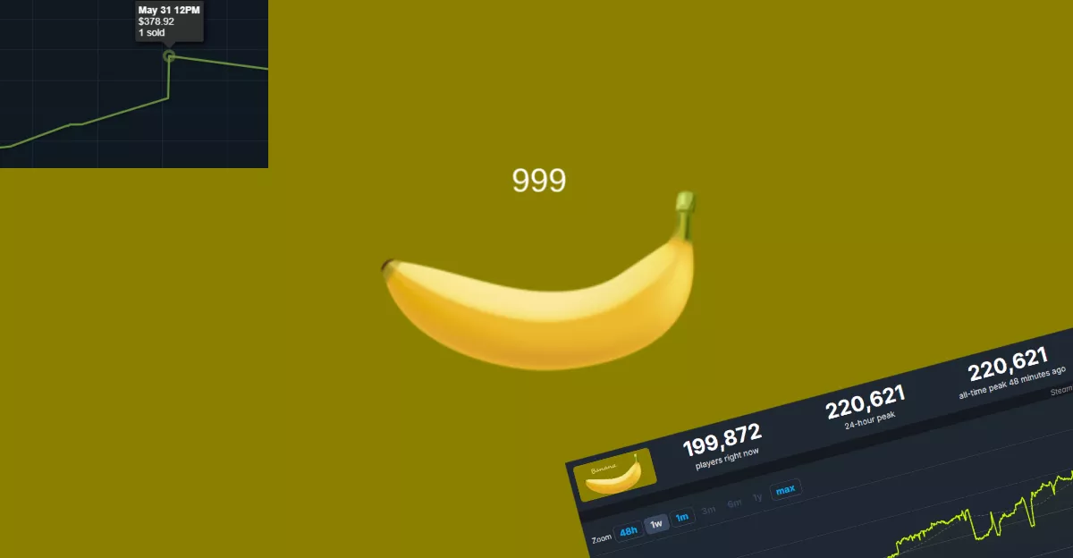 Každý banán je položka, která vám spadne do Steam inventáře a můžete ji umístit na Marketplace. Většina banánů má hodnotu jen pár centů, ty raritní však mohou dosáhnout vyšších cen. Crypticnana se prodal za skoro 12 tisíc korun, nejvyšší cenu však drží Special Golden Banana, který se prodal za 32 tisíc korun.