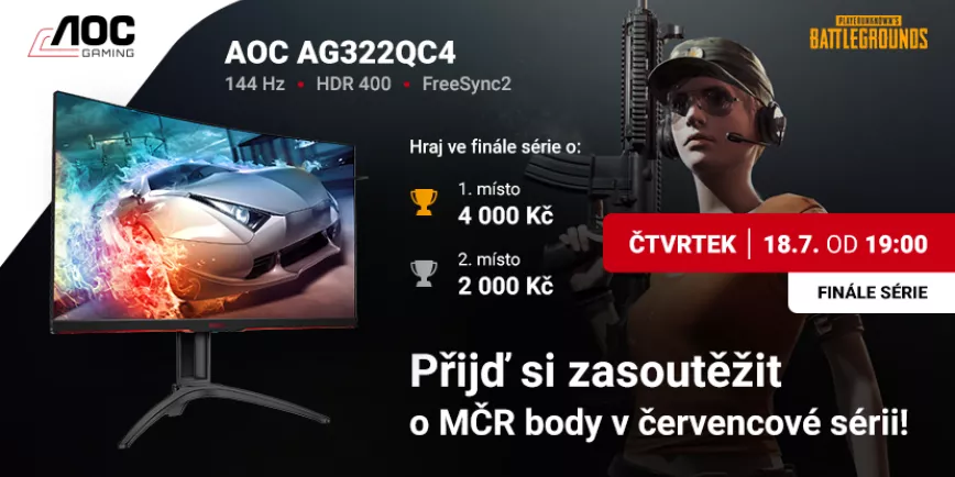 I v červenci pokračujeme v krasojízdě s PUBG turnaji v rámci MČR kvalifikace, tentokrát s partnerem AOC! Přijď si zahrát s kamarády první kvalifikaci už ve čtvrtek 26. července od 19:00 a porovnej své síly s dalšími týmy na česko-slovenské scéně.