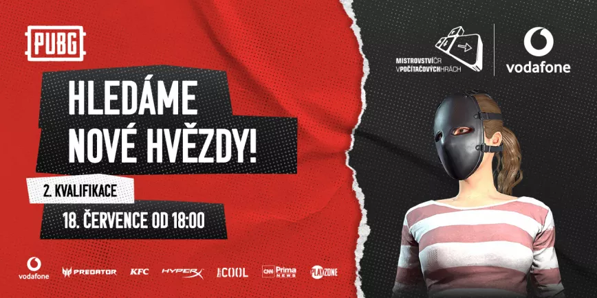 | Pondělí 18. července od 18:00 | Vodafone MČR PUBG - kvalifikace #2 |