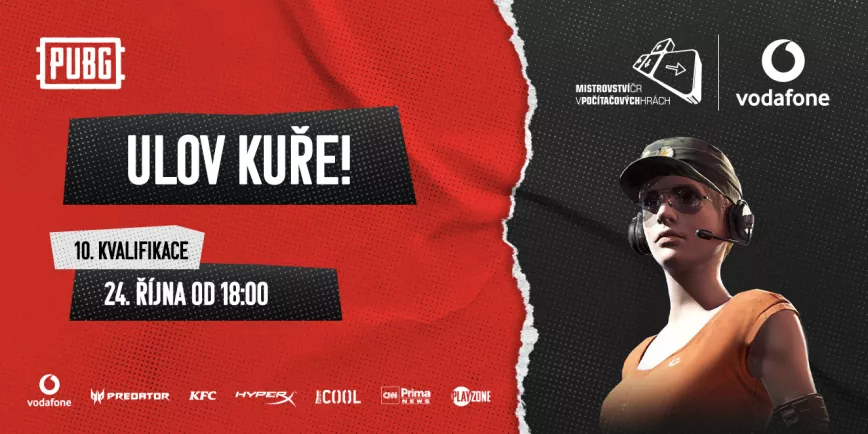 | Pondělí 24. října od 18:00 | Vodafone MČR PUBG - kvalifikace #10 |